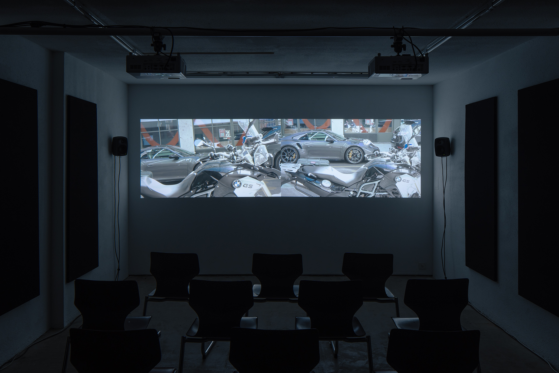 A two-channel film exploring the choreography of cars, reflections, and movement through the city of Geneva — where the gaze drifts between bodies, machines, and the limits of the frame.